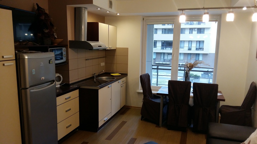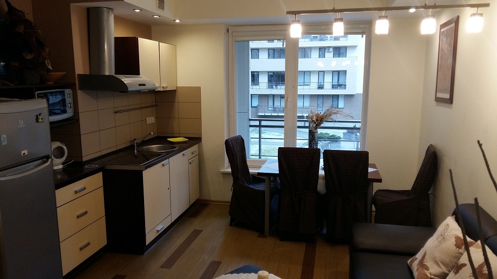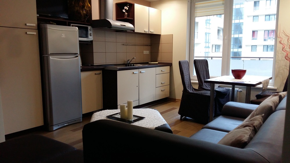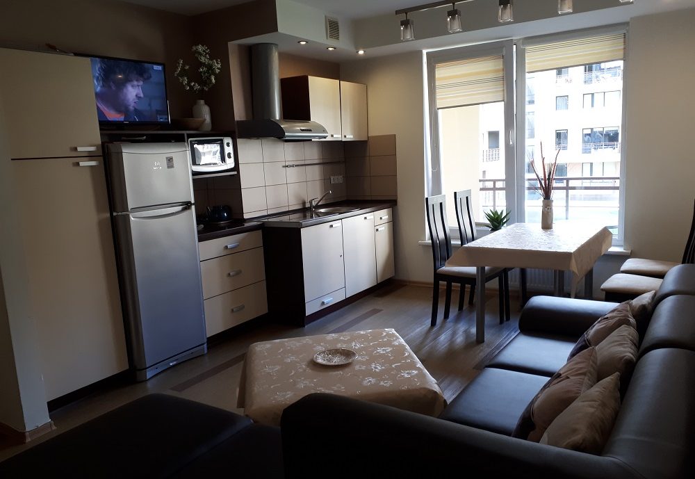 Viename bute yra du miegamieji su atskirais dušu ir WC bei svetainė+ virtuvė su įranga.