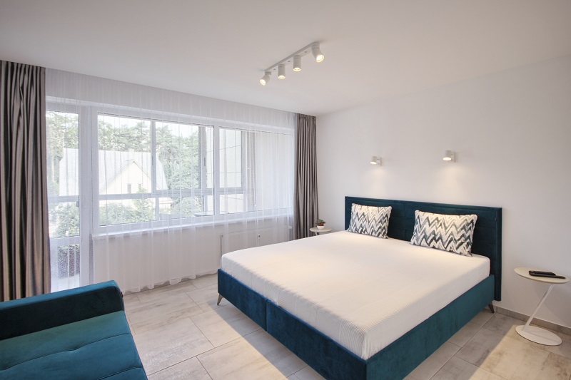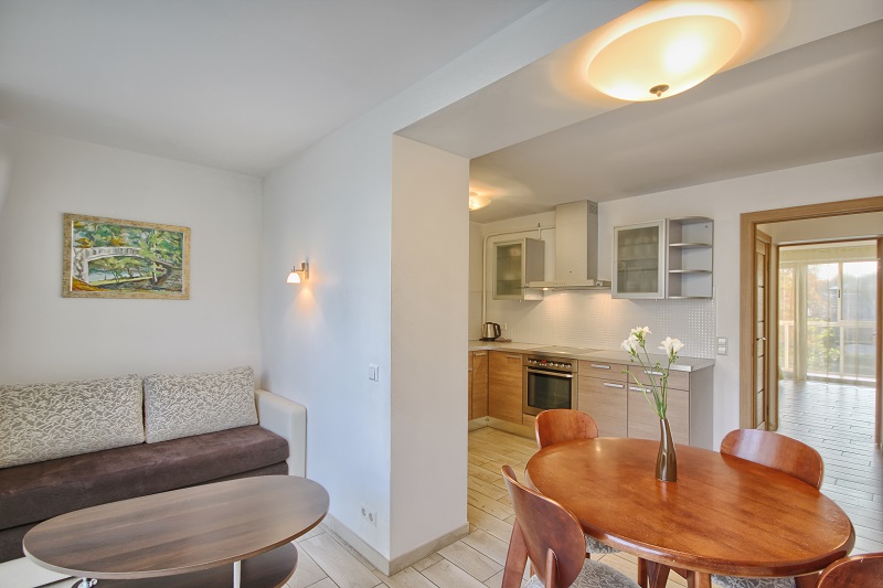 Erdvūs, šiuolaikiškai įrengti vieno, dviejų ir trijų kambarių butai yra tame pačiame name Druskininkų centre, adresu Druskininkų g. 8, Druskininkai.