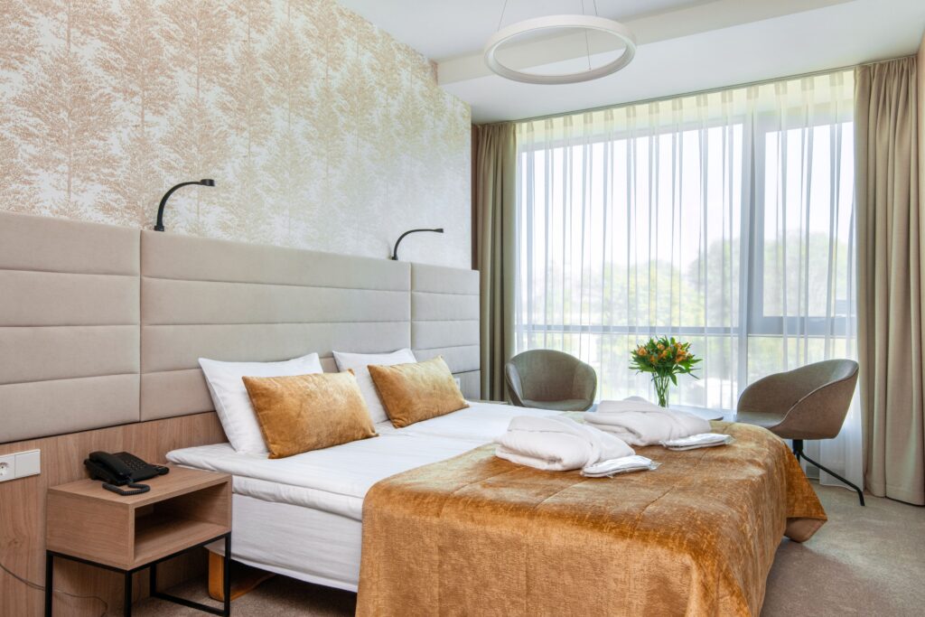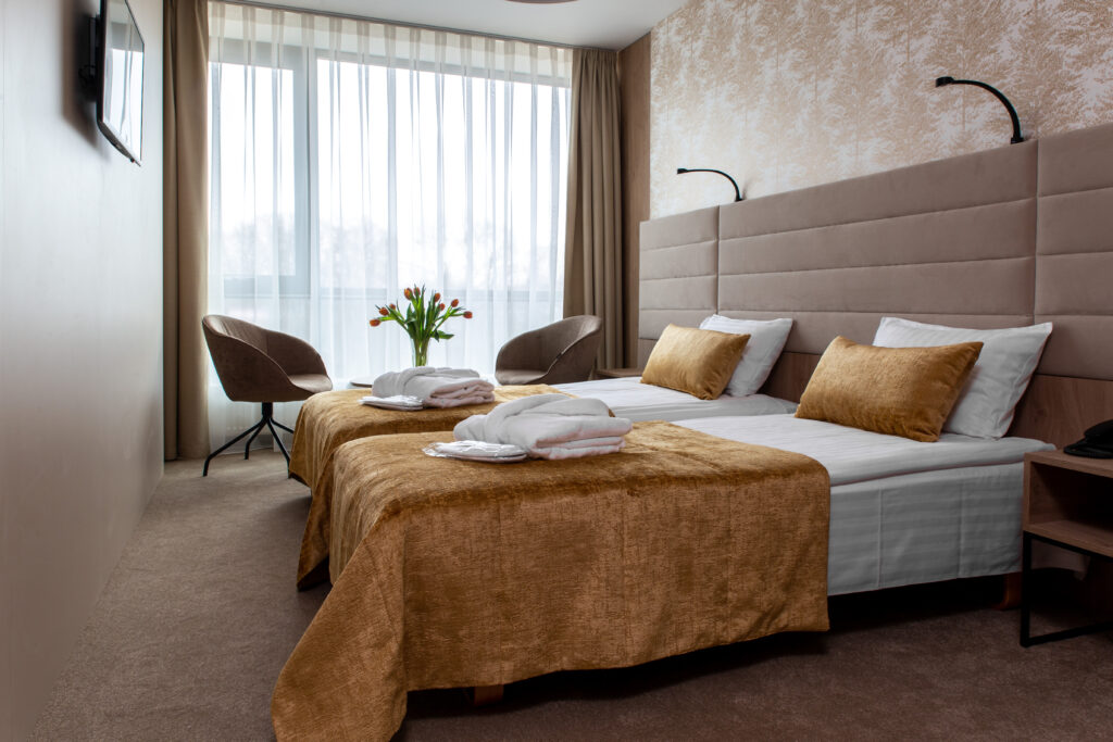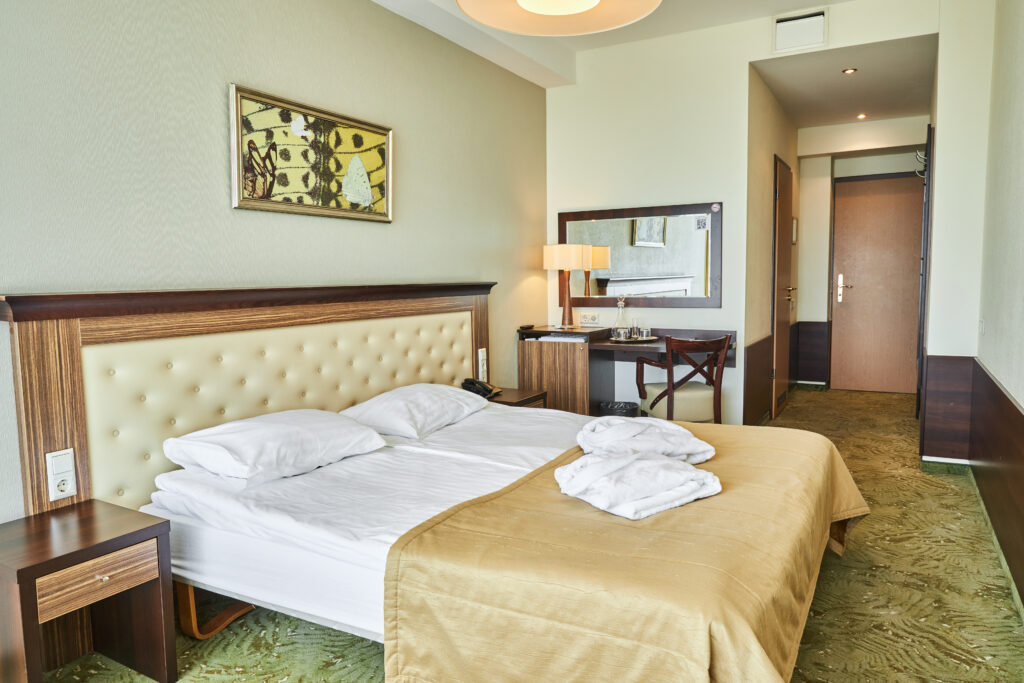 Viešbutis „Lietuva” 3* PLIUS – būtent tai, ko reikia pasiilgusiems ramybės ir jaukumo. Jūsų laukia patogiai įrengti šviesūs 179 viešbučio vienviečiai, dviviečiai bei miniliukso klasės numeriai, pro kurių langus atsiveria nepakartojami Druskininkų kurorto vaizdai. Dauguma kambarių renovuoti. Šeimoms su vaikais siūlome patogius dviviečius kambarius, kurie gali būti tarpusavyje sujungti. Kiekviename viešbučio numeryje yra darbo vieta, šaldytuvas, palydovinė televizija, bevielis internetas, būtiniausi higienos reikmenys, o pro langus atsiveria nuostabūs Druskininkų kurorto vaizdai. Jūsų patogumui kiekviename kambaryje yra minkšti chalatai ir rankšluosčiai. Galimybė užsakyti maistą į kambarį iki 22:00 val. Svečių automobiliams nemokama viešbučio aikštelė. Su augintiniais šiame viešbutyje nepriimame.
