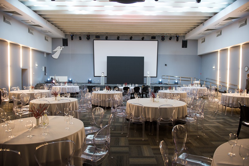 Papildoma informacija: salė atskiriama stiklinių kilnojamų pertvarų pagalba