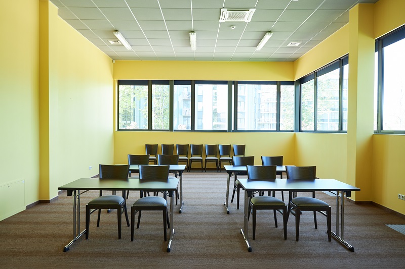 Galimas sustatymas: teatru, furšetu, prie apvalių staliukų, klase