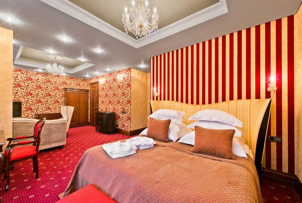 Klasikiniu itališku stiliumi įrengtuose numeriuose su čekiškais sietynais yra šaldytuvai, individualiai reguliuojamos oro kondicionavimo ir šildymo sistemos, palydovinės televizijos kanalus rodantys televizoriai, o kai kuriuose numeriuose įrengtos virtuvėlės. Vonios kambariai apipavidalinti viduramžių paveikslų motyvais dekoruotomis plytelėmis.