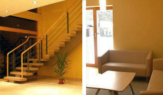 For your stay in Druskininkai we invite you to choose a new, modern and cosy villa on the banks of the Ratnyčėlė stream. The villa is located close to the town centre, in a quiet area, next to the popular K. Dineika Wellness Park. The villa has 15 rooms: 14 double rooms and 1 apartment, and can accommodate 32 guests at a time. Cots for children can be provided on request.