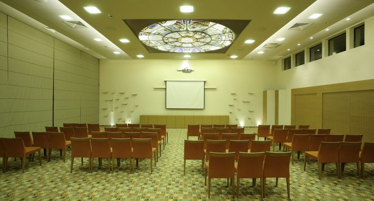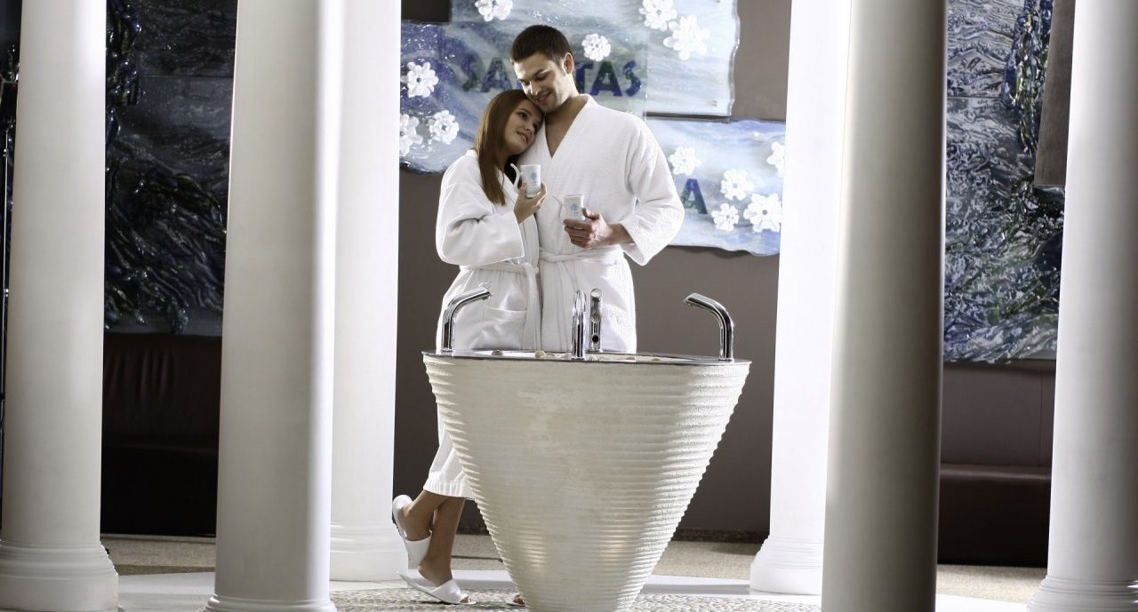 The eight-story hotel is furnished in a restrained elegant and functional Scandinavian style: the interior is rich in natural materials, and the prevailing pastel colors and diffused lighting create a calm, relaxing atmosphere. Here, under one roof, you will find a SPA center with a mineral water boudoir, a swimming pool and more than 300 treatments, a restaurant, a leisure center “Atlantida”, where you can play bowling, billiards or darts, a beauty salon “SPA grožis”, a children’s playroom and a conference center, which can accommodate up to 900 people at a time.