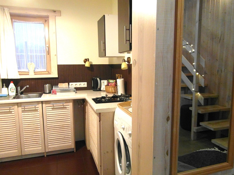 This is a cosy wooden house for a comfortable family holiday. It is located in a quiet residential area, with its own private entrance and private patio. In the yard there is a parking space, a gazebo, a barbecue.
