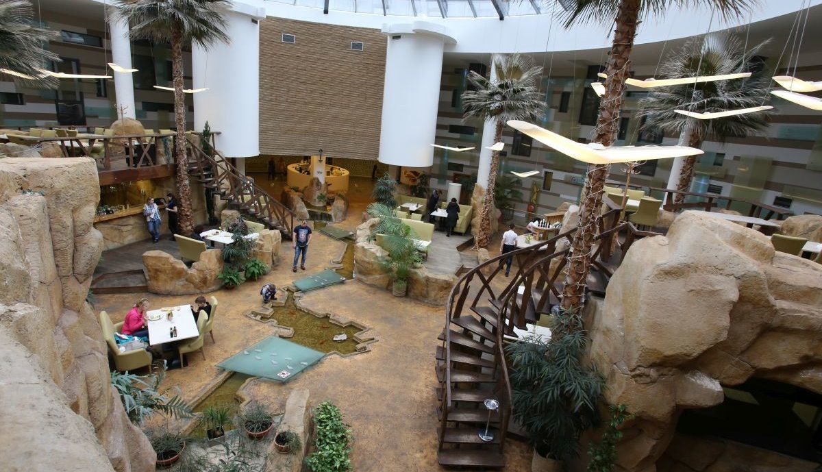 Įžengę į restorano-picerijos erdvę, jausitės tikroje augalų karalijoje, galėsite patogiai įsitaisyti prie staliukų, turinčių 100 sėdimų vietų. Restorano interjeras unikalus: restoranas papuoštas palmėmis, uolomis, čiurlenančiais upeliais ir vandens kriokliu. Tai ramina ir sukuria romantišką nuotaiką. Šeimos šventėms, draugams ar organizacijoms restorane galima surengti banketą, puikų pobūvį ar pristatymą. Dalykinių susitikimų ir vakarėlių dalyviams pasiūlysime specialius valgiaraščius.