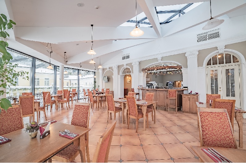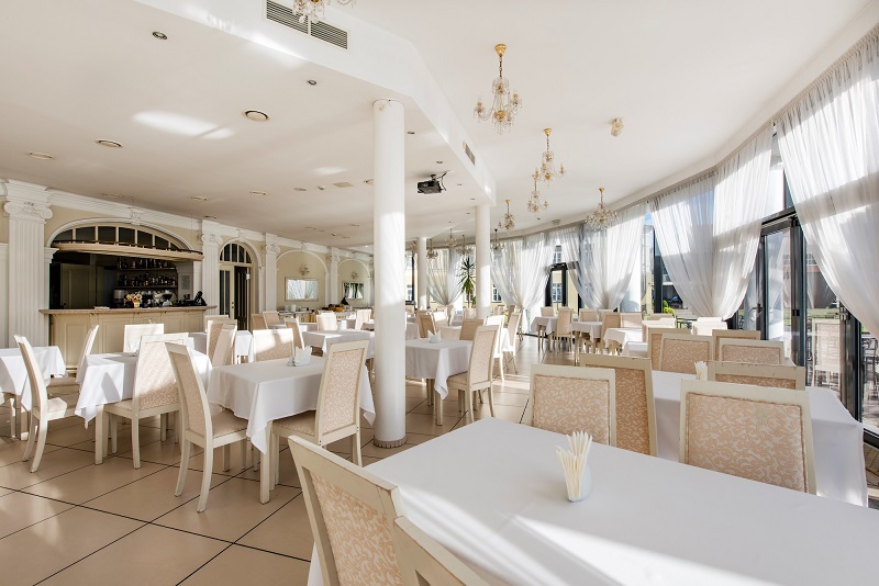 EUROPA Royale Druskininkai restorano erdvė – viena gražiausių ir elegantiškiausių visame kurorte. Ši vieta ne tik išsiskiria savo grožiu, bet ir teikiamų paslaugų kokybe. Mes išsiskiriame savo aplinka, europietiškais patiekalais ir personalo šiluma. Puošnus ir ramus restoranas, kurio aplinka kupina elegancijos ir prabangos, puikiai tinka tiek oficialiems susitikimams, tiek ir maloniam pasisėdėjimui draugų rate. Siūlome didelį pasirinkimą šaltų, karštų patiekalų, desertų bei užkandžių. Taip pat gausus gėrimų asortimentas, tarp kurių nemažai ir įvairių vynų rūšių. Restorane vienu metu mes galime aptarnauti iki 120 svečių.
