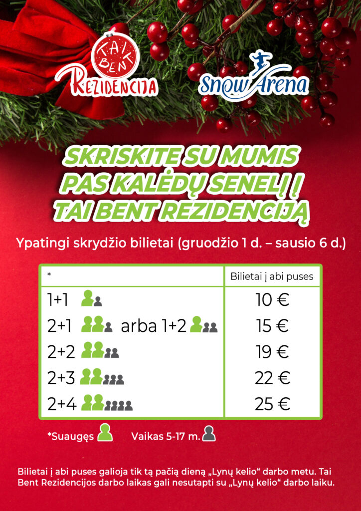 Ypatingos skraidančios rogės, t.y. lynų kelio kabinos, iš miesto centro į Snow Areną, Tai Bent Rezidenciją nukels visas norinčias šeimas su vaikais mažesnėmis kainomis!