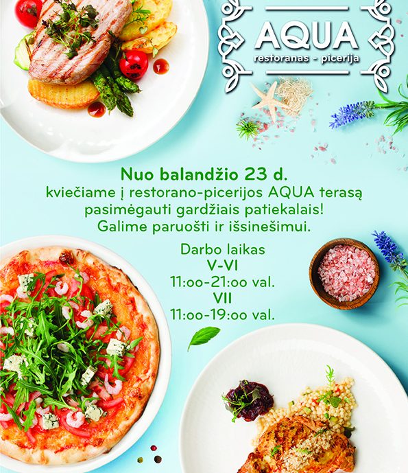 Nuo balandžio 23 d. atidaroma restorano-picerijos AQUA terasa – praleiskite saulėtus pavasario savaitgalius besimėgaudami gardžiais patiekalais!