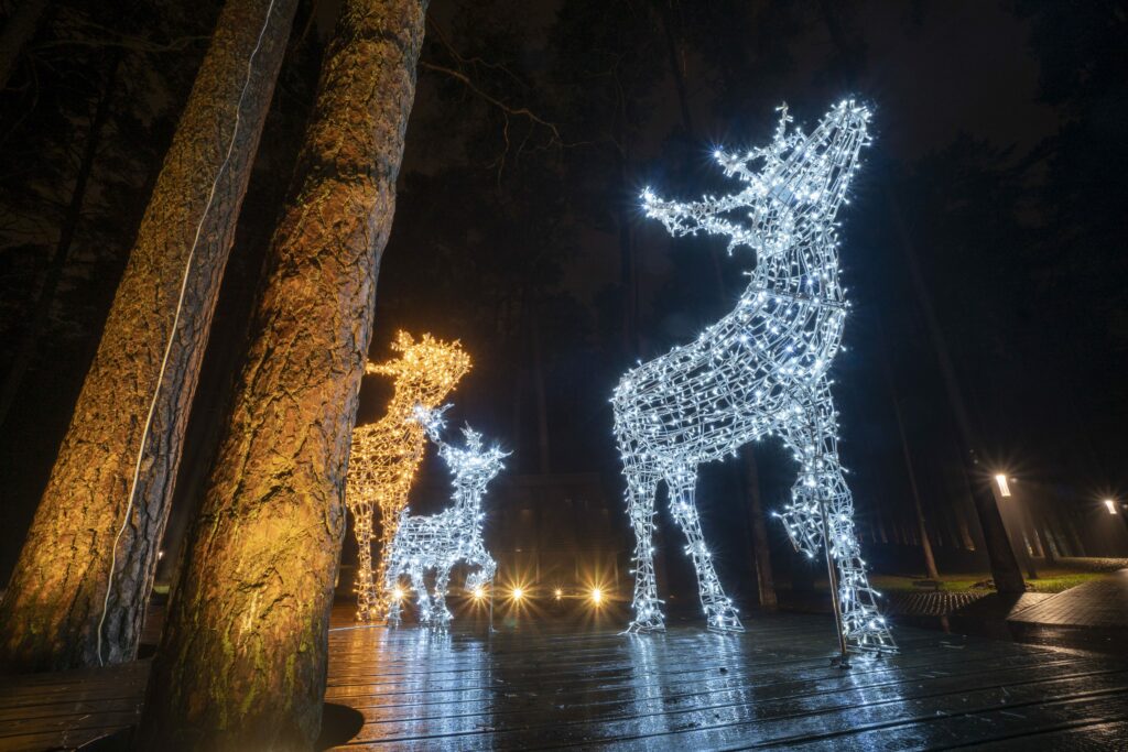 Tad Druskininkai ir vėl stebins šventiniu miesto erdvių papuošimu bei spalvingomis iliuminacijomis. Magiškos instaliacijos pasitiks vos įvažiavus į Druskininkus: sankryžoje prie Druskonio ežero įsižiebs trys auksu karūnuotos pušys – kurorto simbolis, o Senelio Kalėdos švytintys elniai pasiprašė įrengti jiems poilsio vietą prie pat miesto vartų – taip jie nori pasveikinti visus atvykstančius.