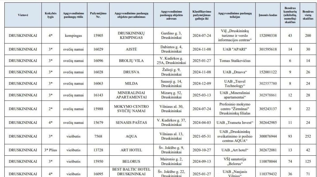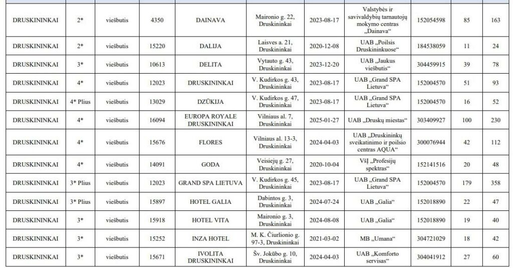 Pateikiame Druskininkų savivaldybės įstaigų sąrašą: