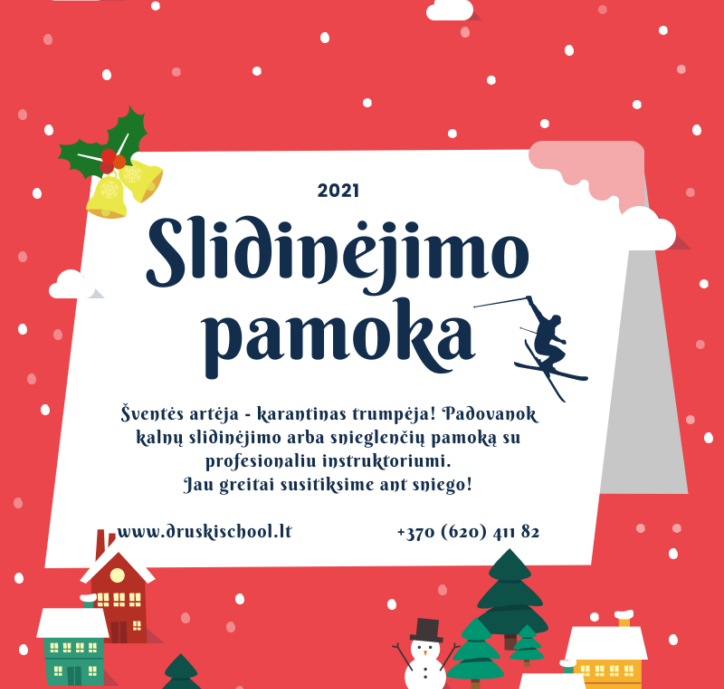 DruSkiSchool kviečia pagalvoti apie artėjančius 2021 metus. Padovanokite slidinėjimo pamoką dabar ir džiaukitės žiemos pramogomis pasibaigus karantinui. Kupono galiojimo laikas – neribojamas!