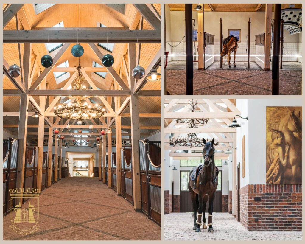 Pristatome jums „Royal Horse Resort” – visiškai naują, išskirtinai inovatyvią jojimo bazę, kuri pasižymi nepakartojama architektūra ir savo grožio didybe. Visai neseniai savo tvirtovės vartus išorės lankytojams atvėręs „Royal Horse Resort“ glumina įspūdingos gamtos, miškų bei Nemuno apsuptyje įsikūrusia unikalia, protėvių istoriją menančia, baze. Šioje erdvėje išpuoselėta kiekviena detalė, o dėmesys smulkmenoms yra itin gerbtinas, todėl kiekviename žingsnyje jus stebins ypatingos, sentimentalią reikšmę saugančios, skulptūros, ežerai, gėlynų bei augalų landšaftai ar laisvai lakstančios alpakos. Čia apstu įvairiausių veiklų – teniso bei padelio kortai, krepšinio aikštelė, takas vedantis didingu mišku prie pat Nemuno, svečių kotedžai… O svarbiausias mūsų pasididžiavimas ir viso to ašis – inovatyvus žirgynas, neturintis analogų Baltijos šalyse. Jame pagal aukščiausius taikomus standartus įrengėme gardus žirgams, maniežus jojimui ir visą jų priežiūrai reikalingą infrastruktūrą.