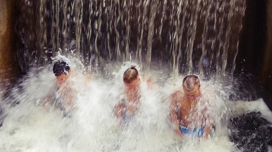 Kaskadinės maudyklės yra originali hidromasažo rūšis. Masažuotojo darbą čia atlieka krintančio vandens srovė, kuri tonizuoja, treniruoja ir grūdina organizmą. Šią gaivinančią procedūrą siūlome derinti su pirties terapija. Naujoji parko pirtis turi pusę tonos sveriančią akmenų krosnį ir du panoraminius langus, pro kuriuos atsiveria Ratnyčėlės upės panorama. Šalia esančioje lauko terasoje atsipalaiduokite, išgerkite arbatos, pasimėgaukite saulės voniomis.