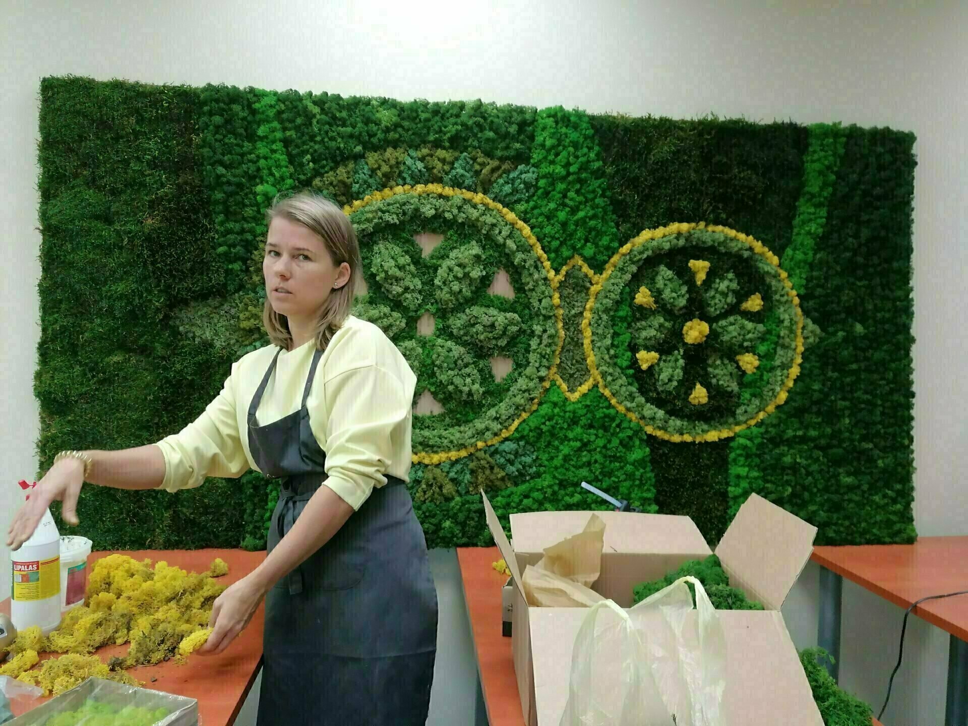 Verpstės – paveikslo dydis išties įspūdingas – 2,40 m aukščio ir 1,30 m pločio. Kūrėja pastebi, kad paveikslo fonas šįkart bus žalias, nes jis kuriamas iš natūralių stabilizuotų samanų, o pačiai verpstei bus panaudotos samanos ir įvairių atspalvių džiovinti augalai. Verpstė iš stabilizuotų samanų papuoš Bendruomenės centro parodų salę.