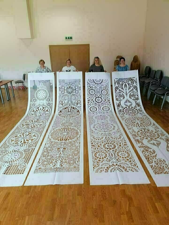 „Visos menininkės vienu balsu tvirtino, kad tokio ilgio juostų iki šiol dar neteko karpyti,“ – patikino plenero kuratorė Diana Lūkošiūnaitė, sertifikuota karpinių meistrė tautodailininkė, meno kūrėja iš Druskininkų. Karpinių juostos su verpstės motyvais, nugulusios ant popieriaus, dabar puošia Viečiūnų bendruomenės centro langus, dar įspūdingiau atrodo, kai švenčių progomis jose žaidžia šviesų instaliacijų spalvos.