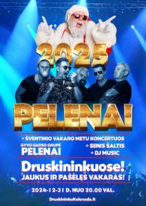 Sutikite 2025-uosius Druskininkuose su gyvo garso grupe „Pelenai“ ir Česlovu Gabaliu! Jūsų laukia pasauliniai pop ir pop-rock hitai, lietuviškos dainos, šokiai su DJ muzika ir net Senis Šaltis su dovanomis! Nepamirštamas Naujametis vakaras – tik čia!
