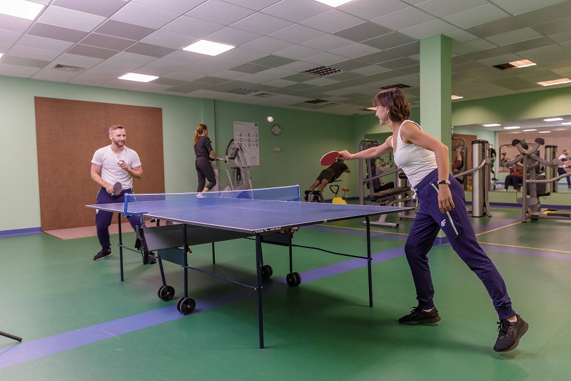 Aktywne życie, ruch, zamiłowanie do sportu i ćwiczeń są również bliskie sercu sanatorium promującego zdrowie. Goście przebywający w Sanatorium Druskieniki mogą bez dodatkowych opłat korzystać z kortów tenisowych, boisk do koszykówki, badmintona i siatkówki na świeżym powietrzu oraz grać w tenisa stołowego i piłkarzyki, squasha, bilard i cymbergaja w pomieszczeniach.