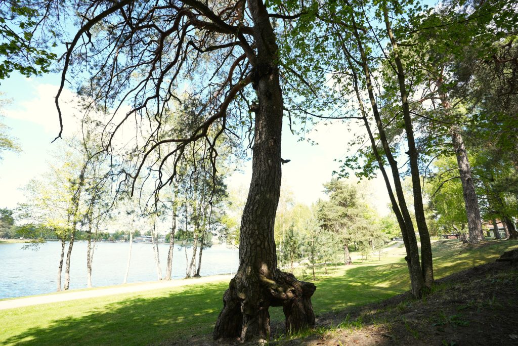 Wspomnienia Jadvygi i Valeriji Čiurlionytis odnoszą się do rodzinnego domu nad jeziorem Druskonis, który ich rodzice wynajmowali przez prawie dwie dekady. Chociaż dziś nie zobaczysz tego skromnego domku na drzewie, możesz dotknąć historycznej sosny, która upamiętnia życie rodziny Čiurlionytis nad jeziorem. „W pobliżu naszych domków rosła bardzo dziwna sosna. Jej grube korzenie były ciekawie rozłożone na ziemi, tworząc rodzaj stołka. Nasz brat Mikalojus Konstantinas często lubił siadać na tym „stołku” wieczorami, aby oglądać zachód słońca po drugiej stronie jeziora. Łatwo znajdziesz sosnę „biegnącą” w dół wzgórza, jej korzenie wystające z ziemi jak „kandelabr” przyciągną twoją uwagę.