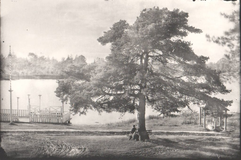 Eksponat „Sosna w Druskonis” na wystawie fotograficznej „Stare Druskienniki” (fotografia autorstwa Domu-Muzeum M. K. Čiurlionisa)