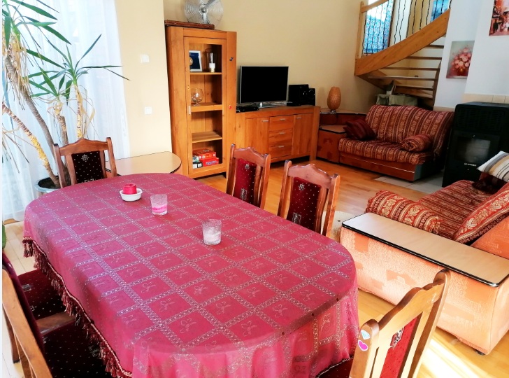 Komfortowy dom Domalita położony jest w cichej i spokojnej okolicy w Druskienikach przy ulicy Nemuno 5. Zaledwie 100 metrów od obiektu znajduje się sanatorium Białorus z zabiegami spa i basenami. Aquapark, Zakład przyrodoleczniczy, park Zdrojowy i plac rozrywki oddalone są od obiektu o 700 metrów. Odległość od parku rozrywki Uno Adventure Park wynosi 1,5 km. Odległość od ośrodka Snow Arena wynosi 4 km, a od kawiarni Kolonada – zaledwie 1 km. „Domalita” może pomieścić jednocześnie 2-3 rodziny (maksymalnie 8-10 osób). Dom posiada trzy pokoje dwuosobowe oraz pokój z łóżkiem piętrowym dla dzieci i podwójną rozkładaną sofą. W domu znajduje się kuchnia, zmywarka, 2 łazienki, pralka, salon, Wi-Fi, telewizja kablowa. W ciepłe letnie wieczory można spędzić czas na przytulnym tarasie i cieszyć się grillem.