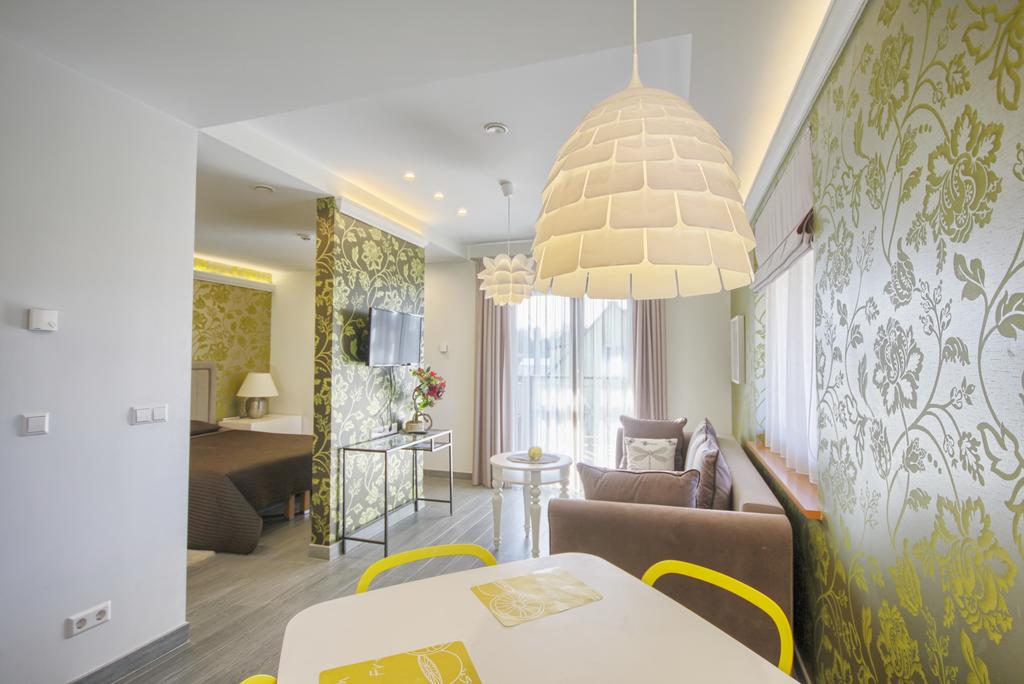 Nowoczesne apartamenty z autonomicznym geotermalnym systemem ogrzewania i chłodzenia wyposażone są w telewizor z płaskim ekranem i dostępem do kanałów satelitarnych, taras, kuchnię z kuchenką mikrofalową i lodówką oraz łazienkę z prysznicem, bidetem, suszarką do włosów i ręcznikami w dwóch rozmiarach. Z okien pokoi roztacza się widok na ogród.