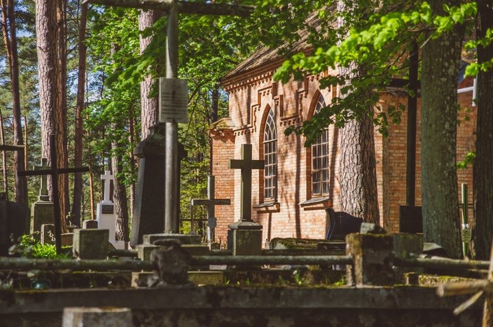 Кладбище у озера Друсконис — беспрецедентный свидетель истории города с 1858 года: могилы известных личностей, внесших вклад в развитие курорта и нашедших свое последнее пристанище среди пышных сосен Дзукии. В комплексе Старого кладбища мы увидим неоготическую часовню начала XX века и недавно отреставрированную православную церковь Святого Архангела Гавриила.